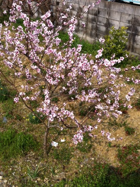 梅の花が散り、家の前の畑の土手には黄色い水仙やたんぽぽが咲いている。