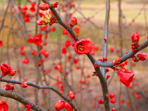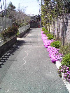 ぐるっと迂回して橋を渡りいつものようにお地蔵さまのかどを曲がるとかわいいピンク色の植え込みや蕾からひらいたばかりの花々が迎えてくれる。ずっと眺めていたいような気持ちのいい小道である
