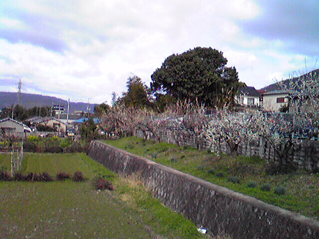 梅の花びらはすっかり散り落ちて、新芽だけが枝に残され雨に打たれている。その木々の下には水仙が行儀よく並んで植えられ黄色い小さな花を、 畑の向こう側には菜の花がひと塊りになって咲いている。