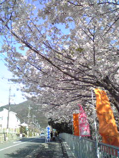 木曜日 青い空‥風はほんのり冷たいが陽のあたるところはポカポカ天気で、ピースフルリンクの部屋の中もたくさんの所員さんや職員の方の活気で暑いくらいである。ピース号を降りると川向いのお地蔵さんを見守るように満開の桜の木が立っているのが眼にはいる。